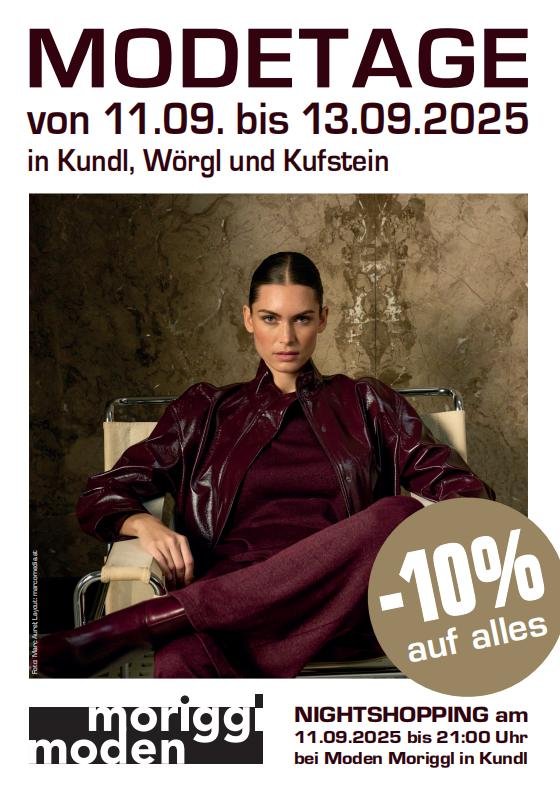 Vom 11. bis 13. September 2025 laden wir Sie herzlich zu unseren Modetagen in Kundl, Wörgl und Kufstein ein.